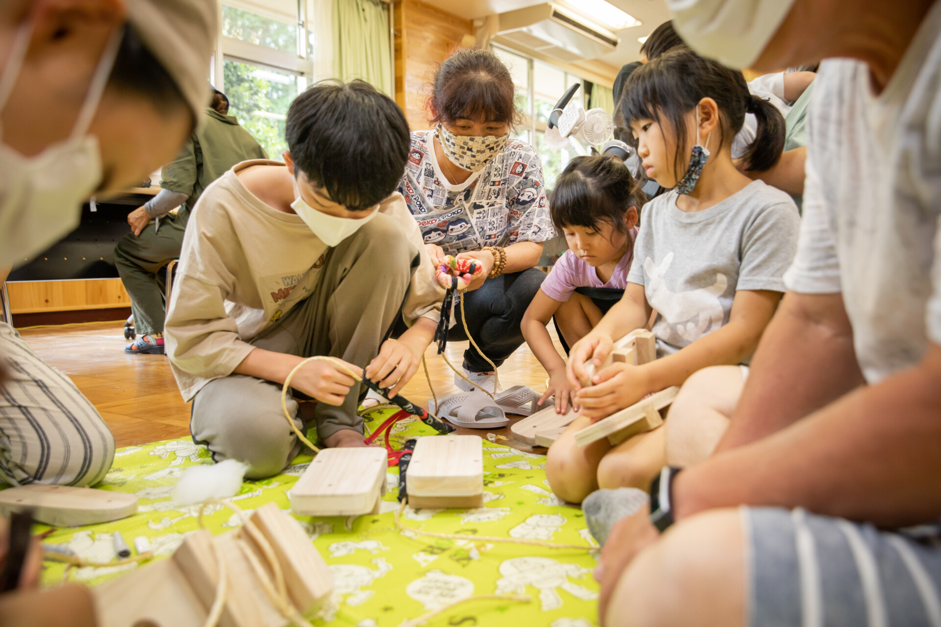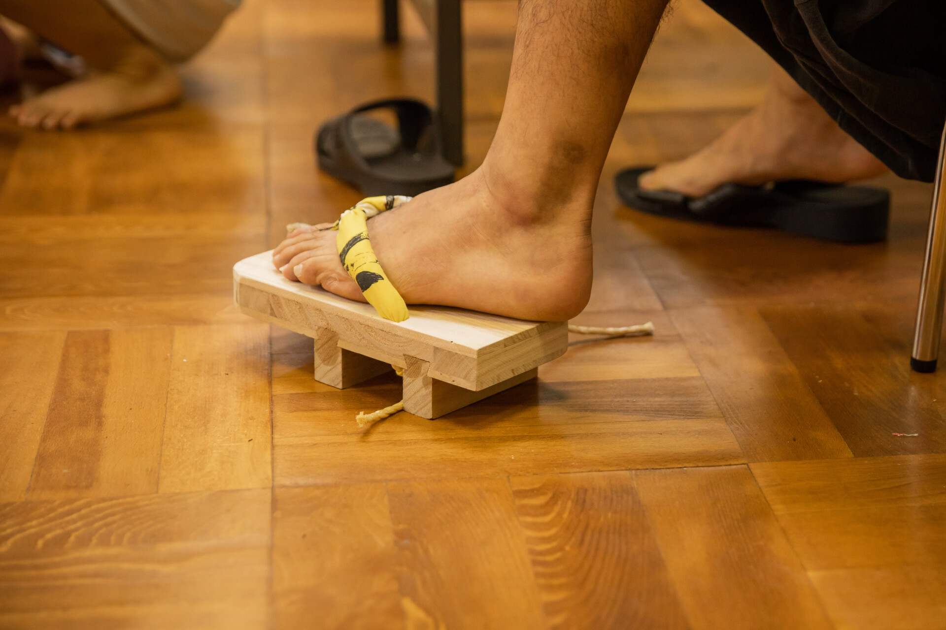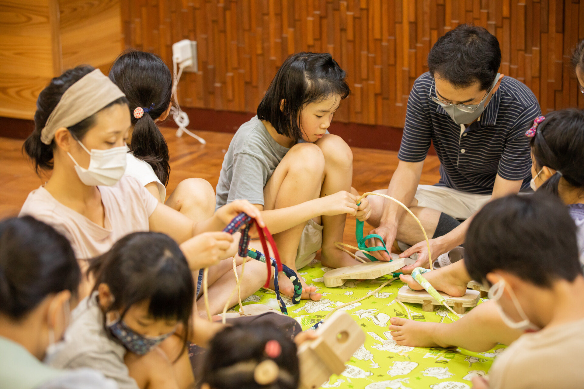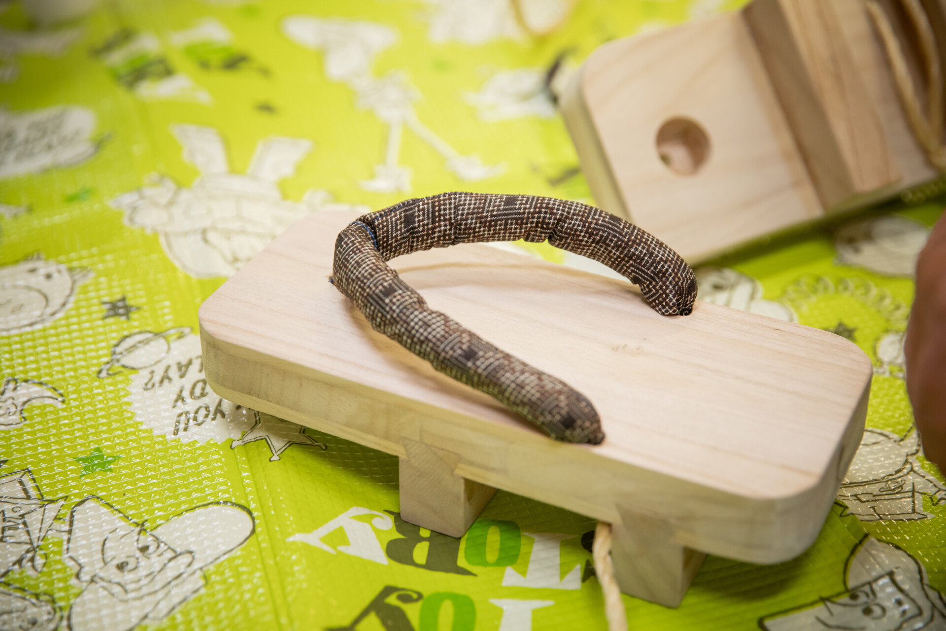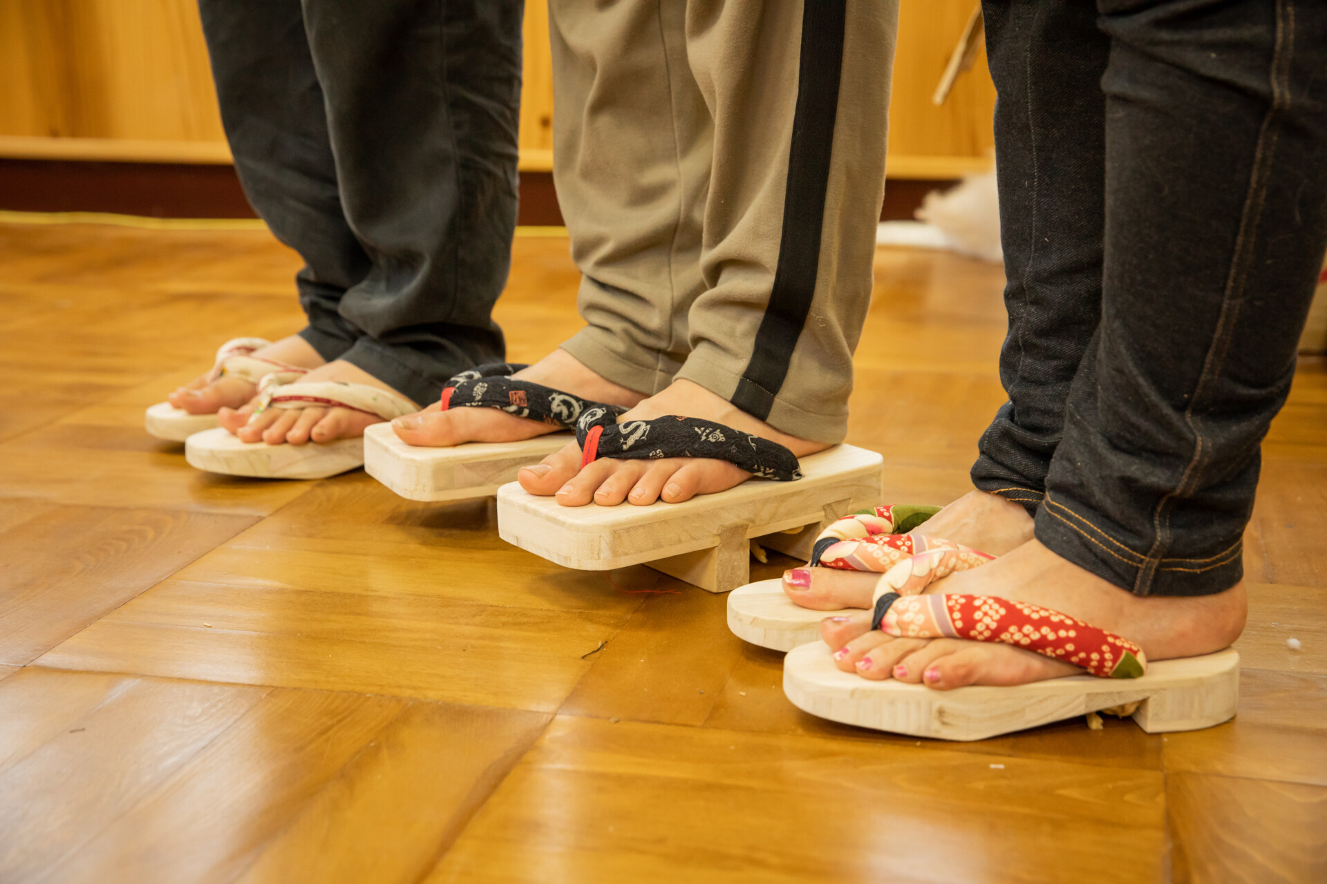 桐板から各自が加工して下駄を製作。それぞれが持ち寄ったハギレで鼻緒づくり。ミシンや道具を使いながら7時間かけて子どもも大人も自分の足に合ったオリジナルの桐下駄に。小さな子どもたちも自分の力で最後までやりきり、普段と違う歩く感覚を愉しみながら駆けまわっていた。今後は東京に自生する桐の木で東京ブランドの桐下駄ができたらと考えている。