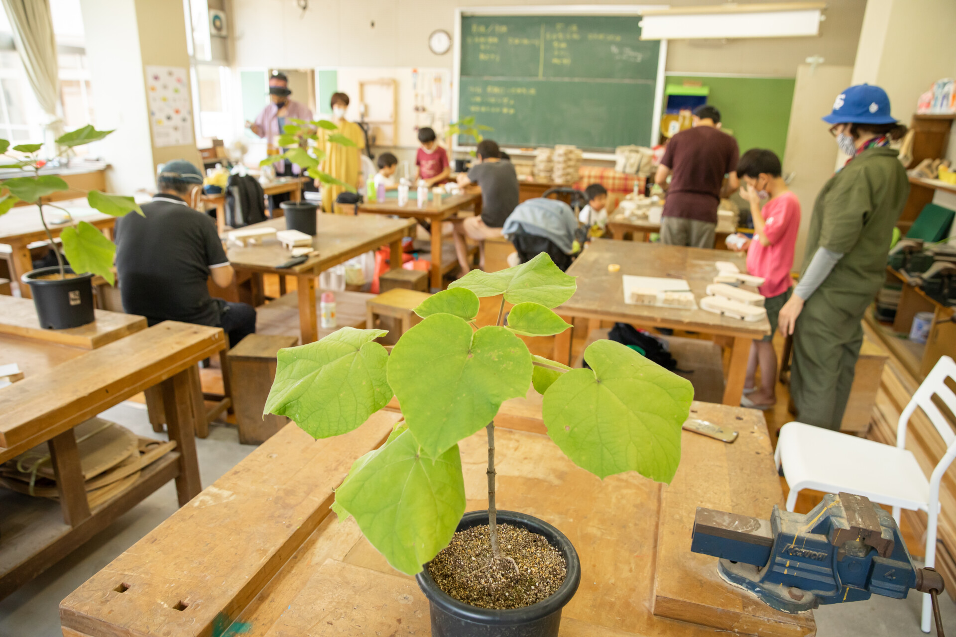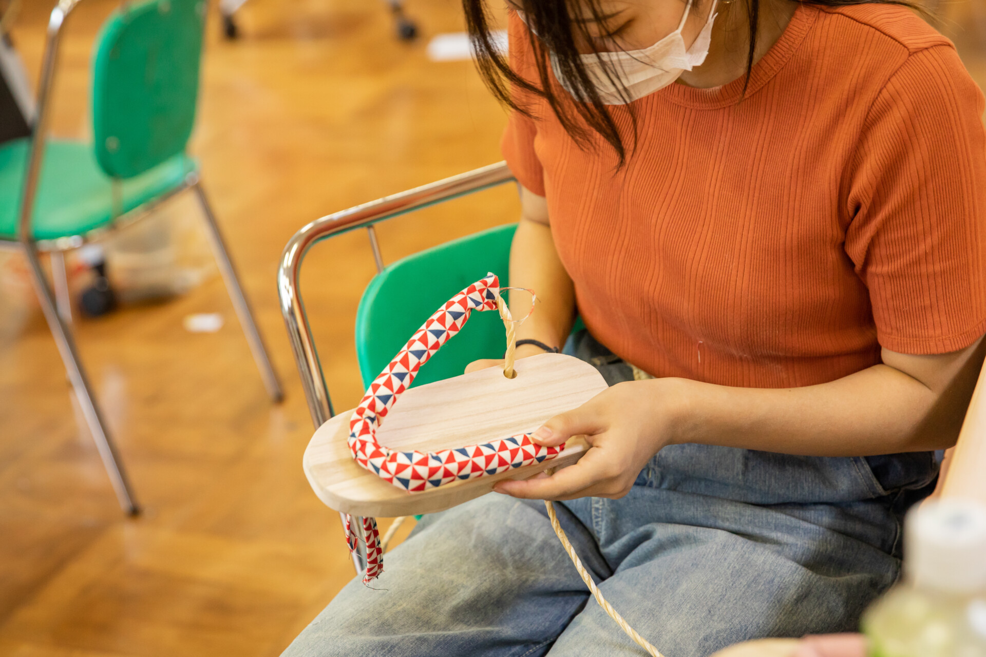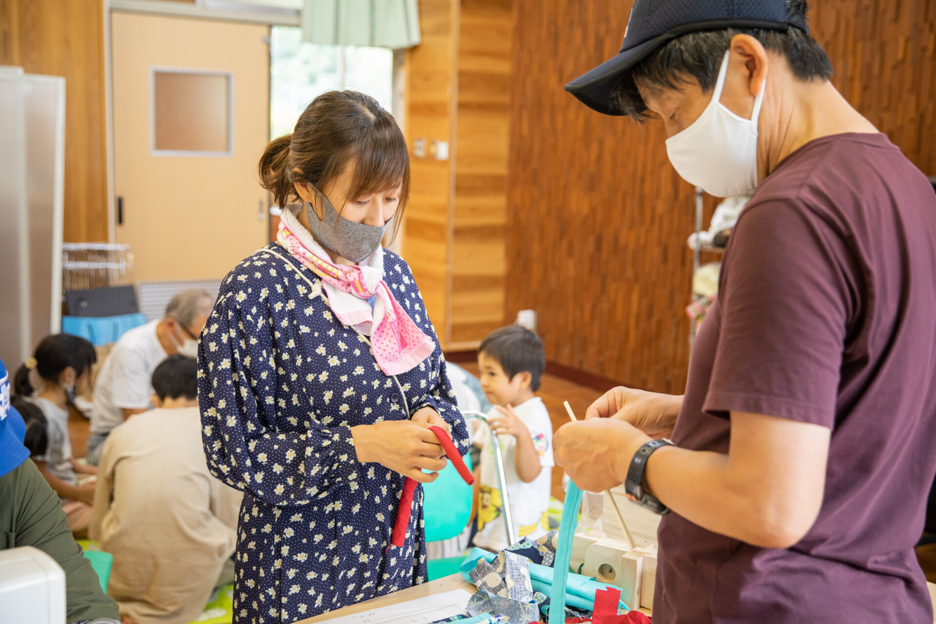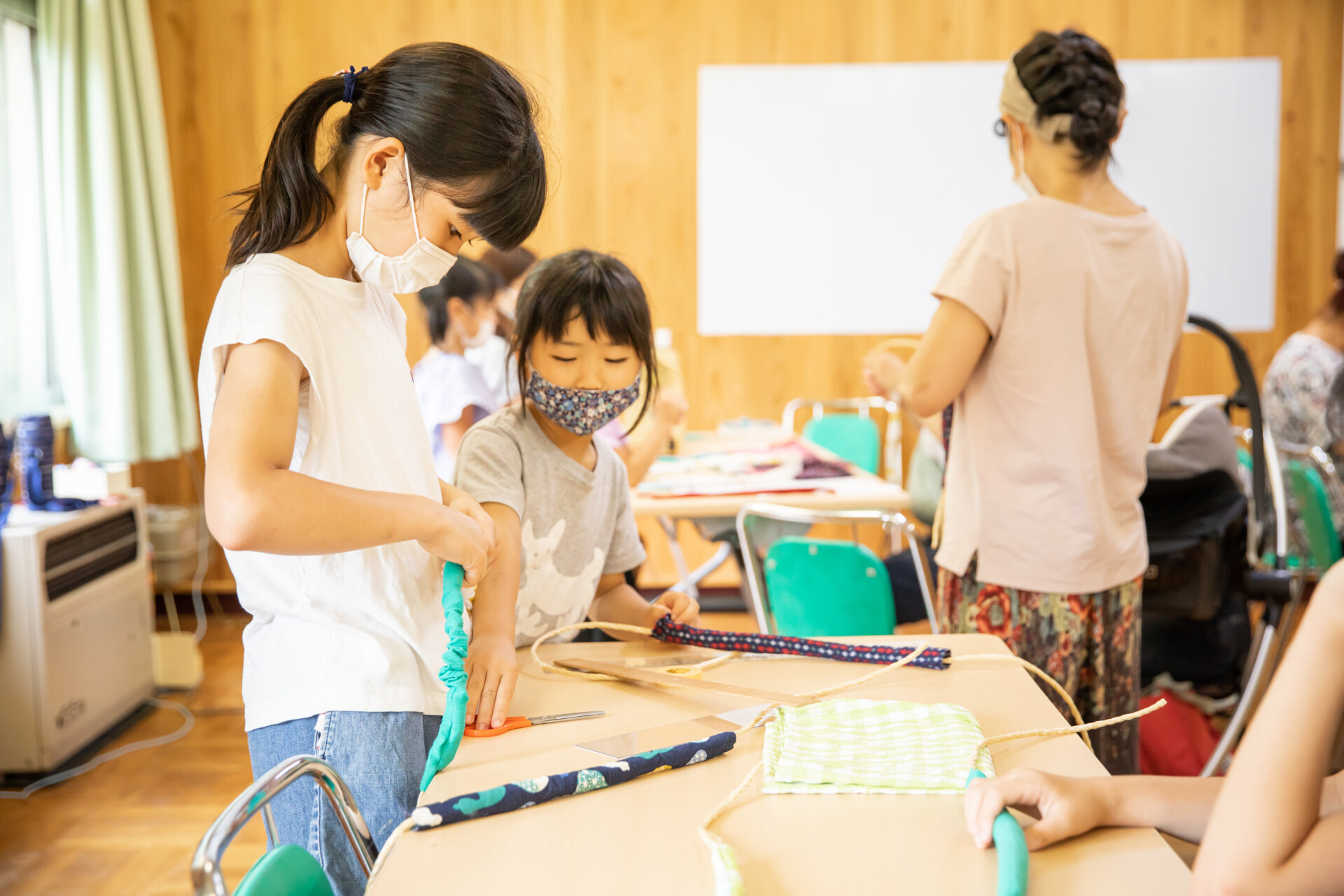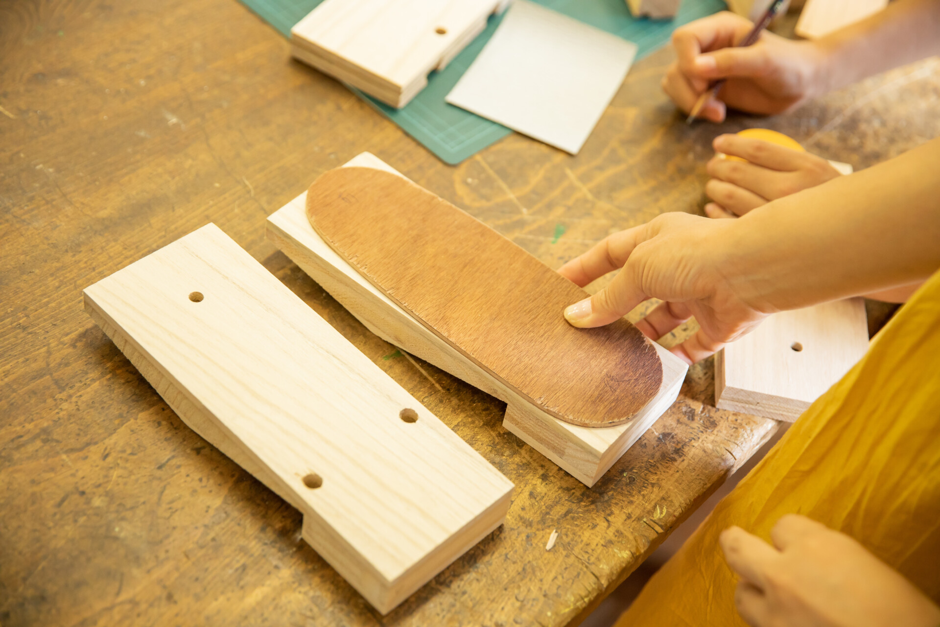 桐板から各自が加工して下駄を製作。それぞれが持ち寄ったハギレで鼻緒づくり。ミシンや道具を使いながら7時間かけて子どもも大人も自分の足に合ったオリジナルの桐下駄に。小さな子どもたちも自分の力で最後までやりきり、普段と違う歩く感覚を愉しみながら駆けまわっていた。今後は東京に自生する桐の木で東京ブランドの桐下駄ができたらと考えている。