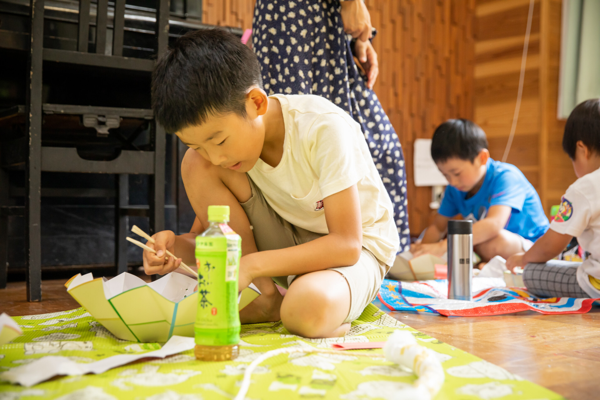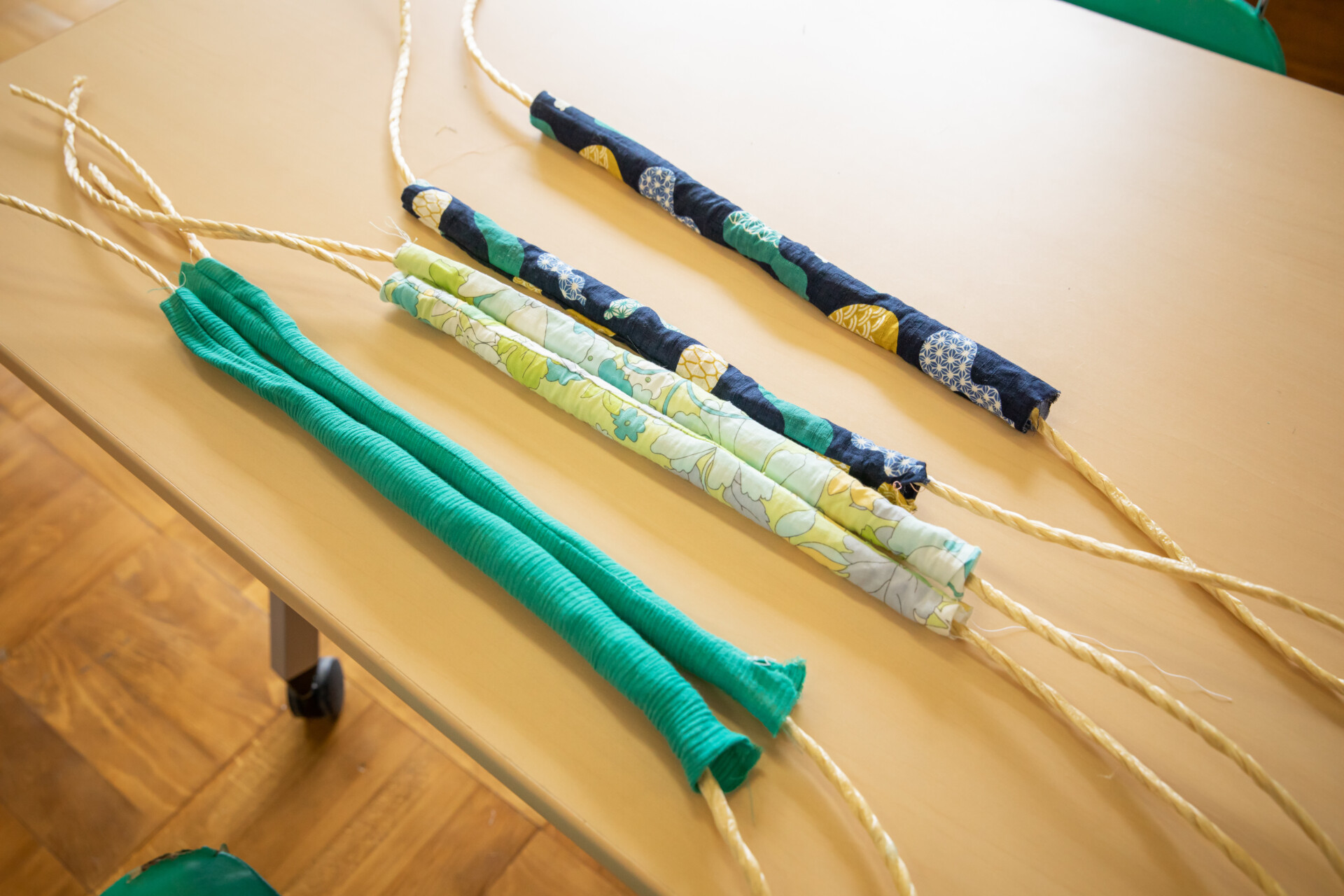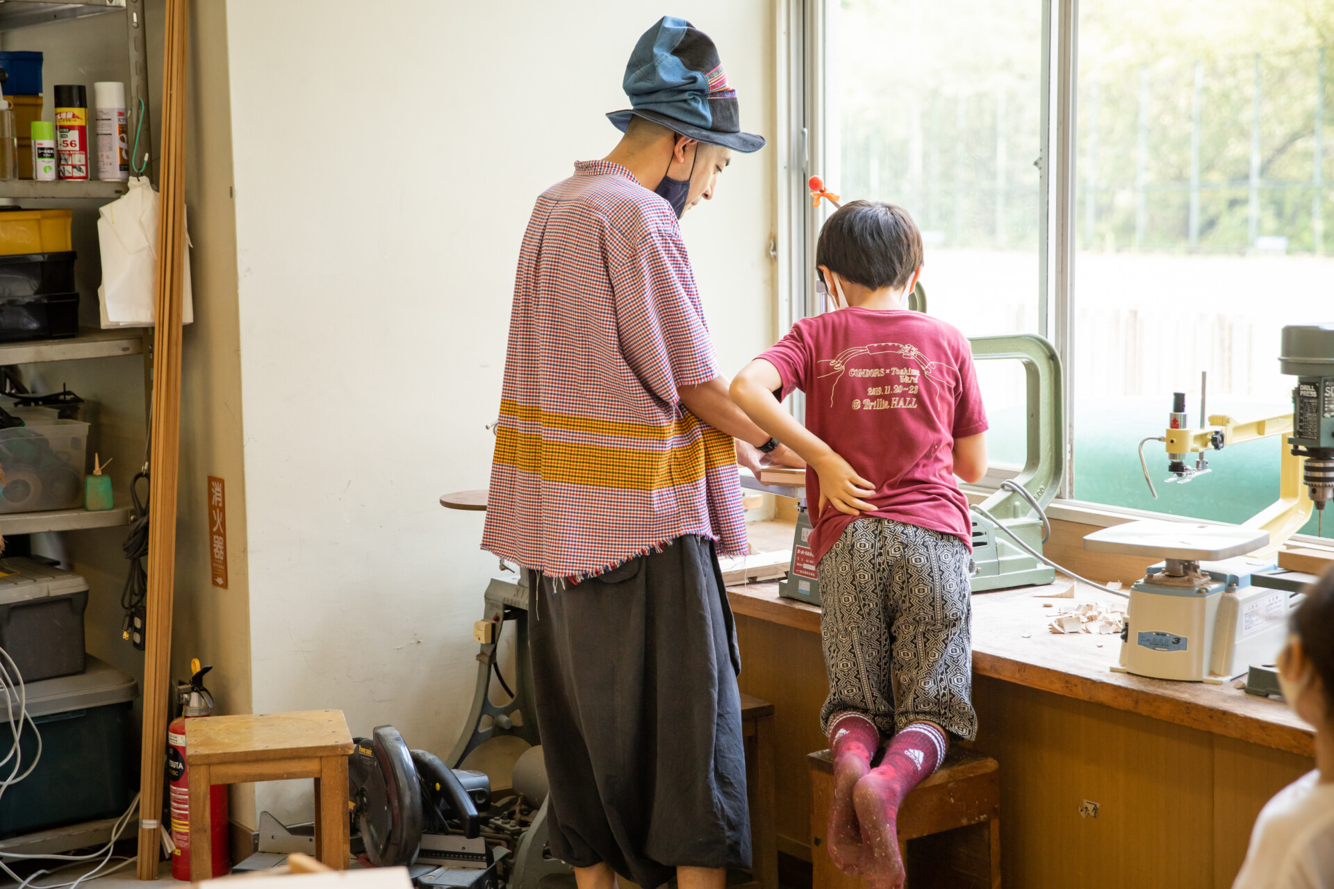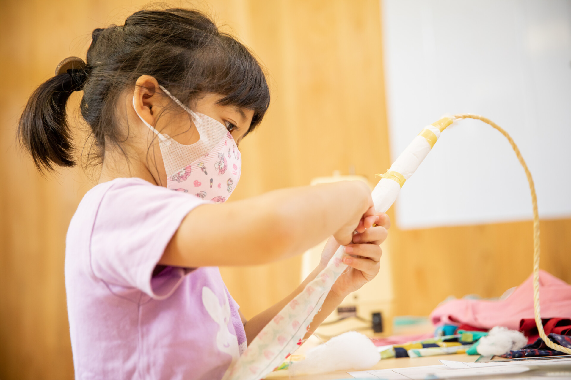 桐板から各自が加工して下駄を製作。それぞれが持ち寄ったハギレで鼻緒づくり。ミシンや道具を使いながら7時間かけて子どもも大人も自分の足に合ったオリジナルの桐下駄に。小さな子どもたちも自分の力で最後までやりきり、普段と違う歩く感覚を愉しみながら駆けまわっていた。今後は東京に自生する桐の木で東京ブランドの桐下駄ができたらと考えている。