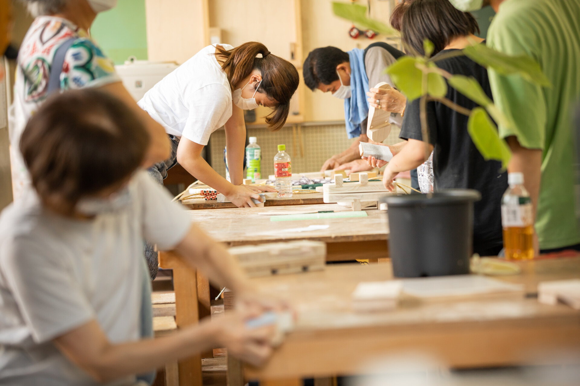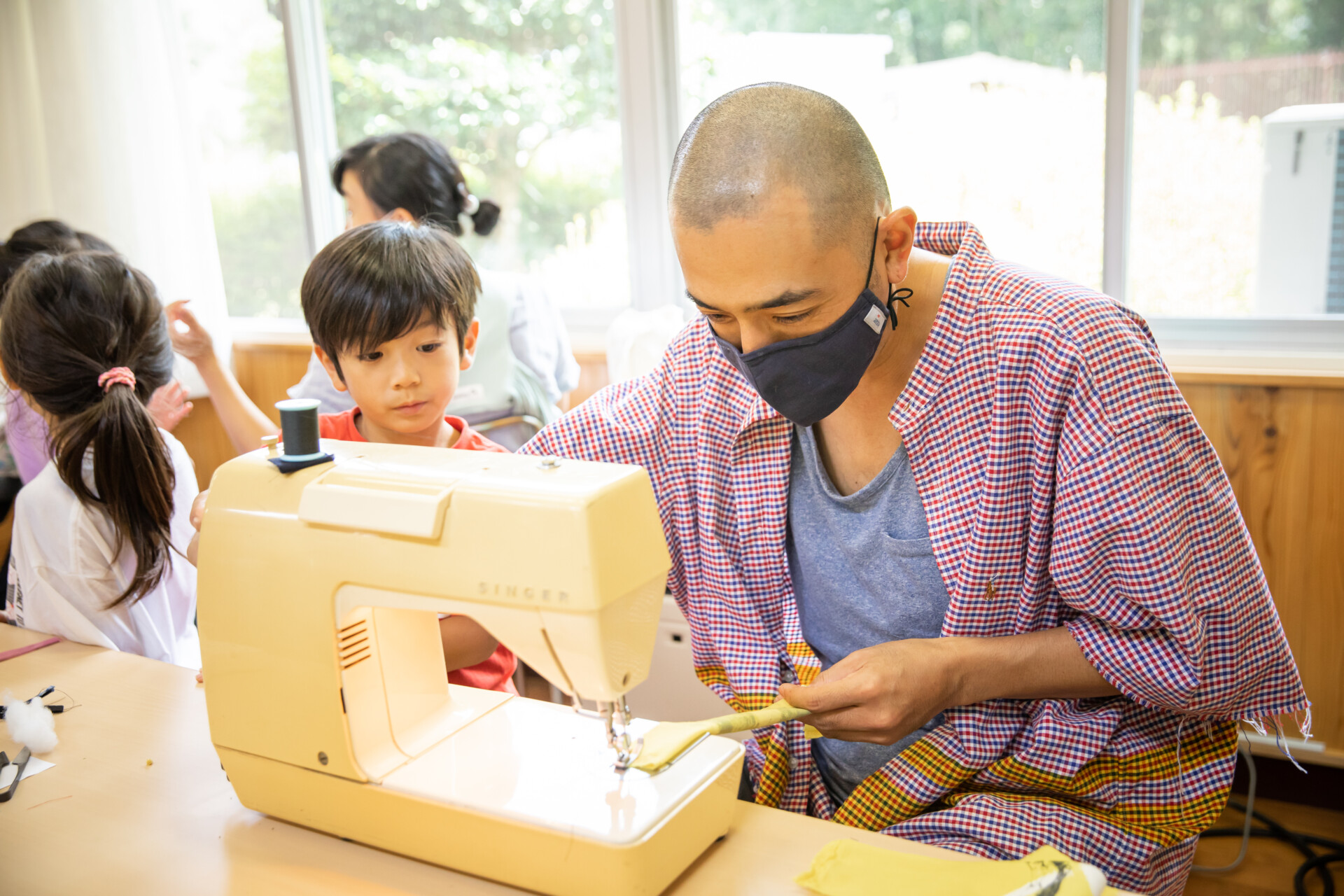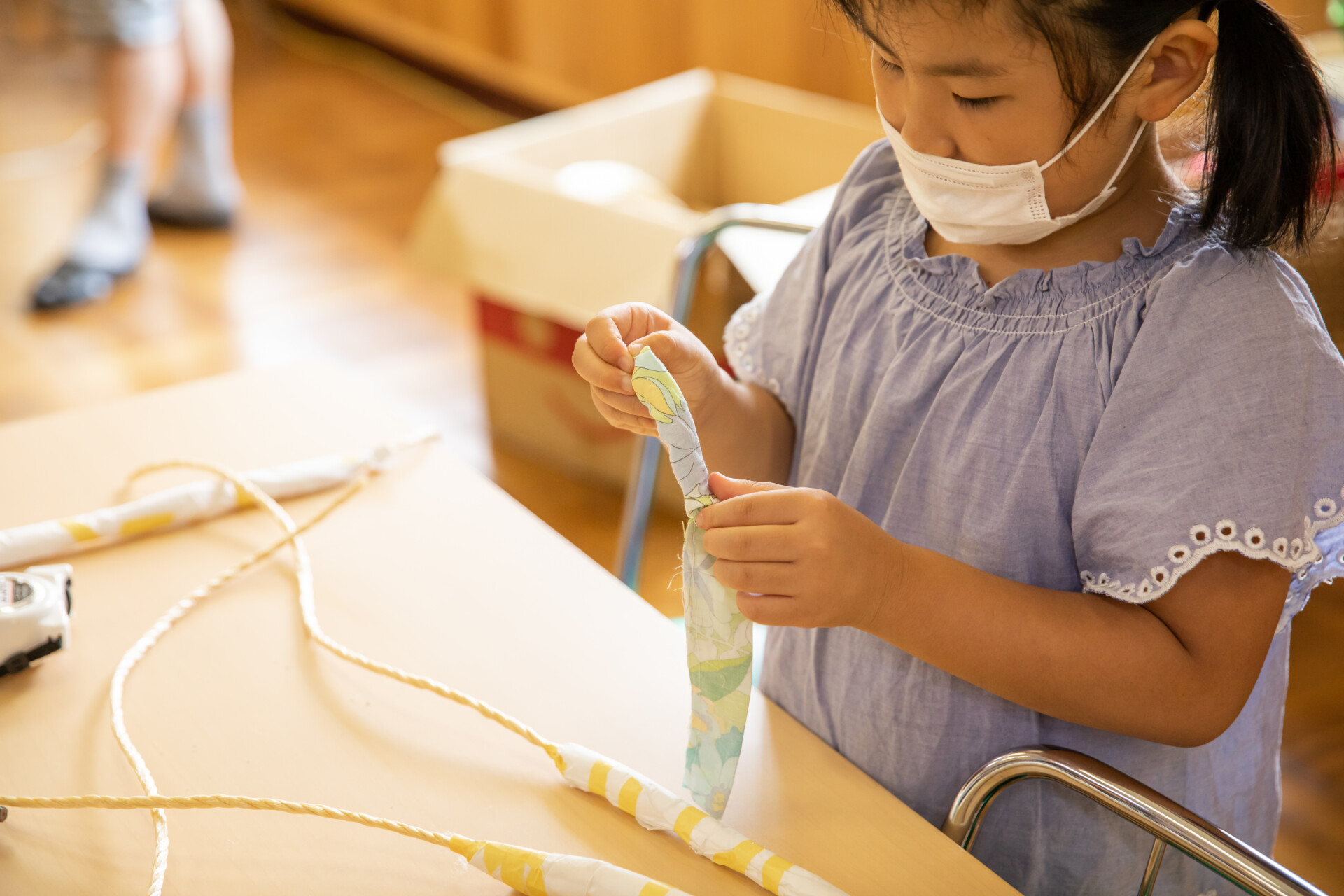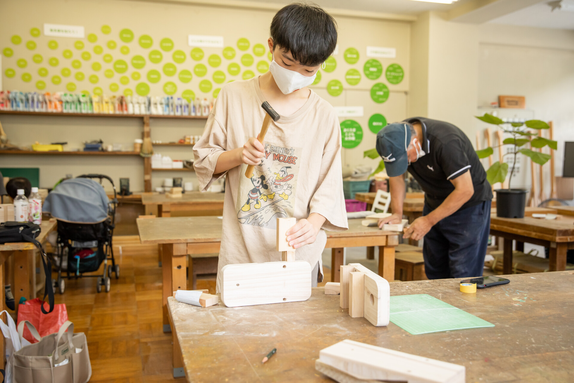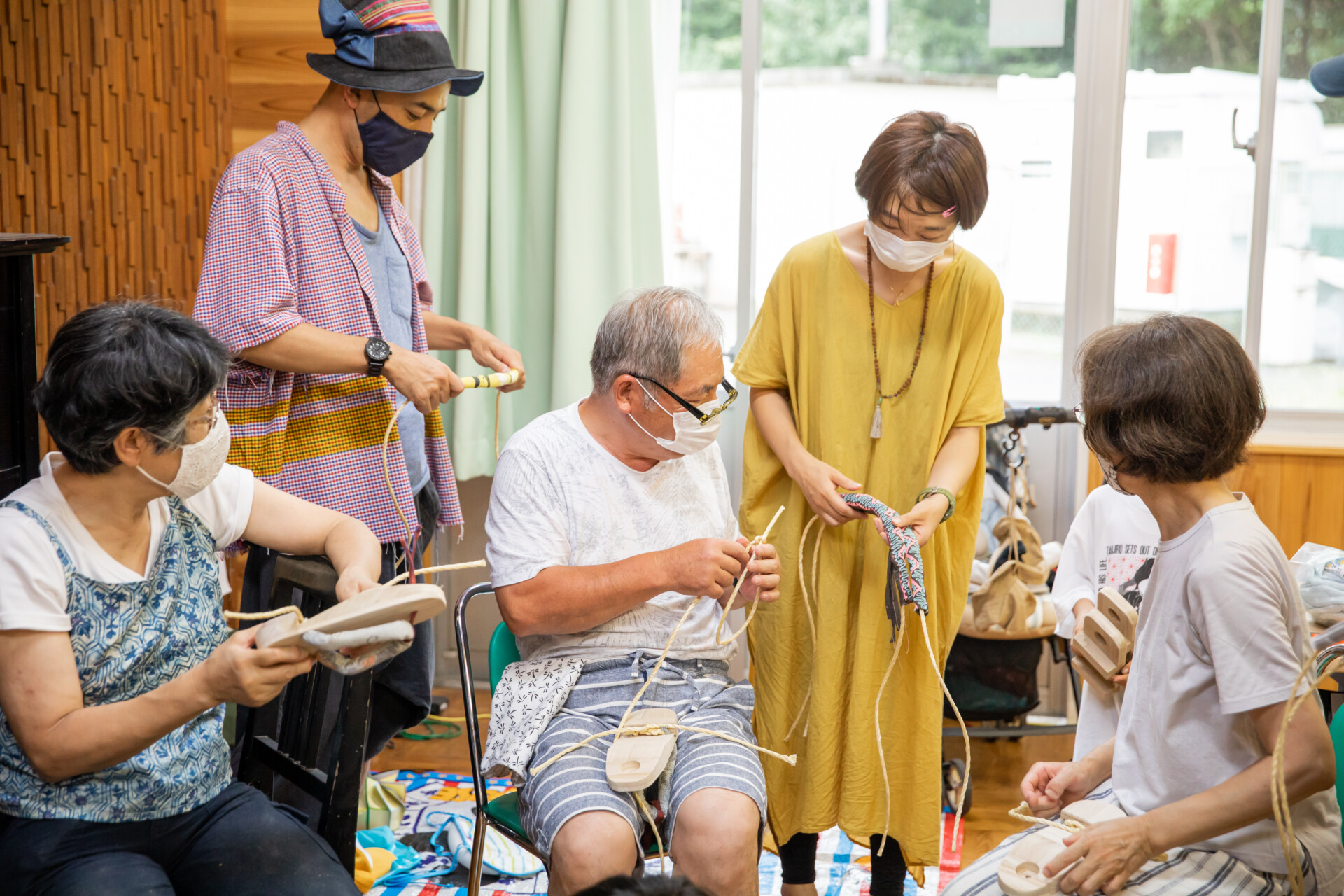 桐板から各自が加工して下駄を製作。それぞれが持ち寄ったハギレで鼻緒づくり。ミシンや道具を使いながら7時間かけて子どもも大人も自分の足に合ったオリジナルの桐下駄に。小さな子どもたちも自分の力で最後までやりきり、普段と違う歩く感覚を愉しみながら駆けまわっていた。今後は東京に自生する桐の木で東京ブランドの桐下駄ができたらと考えている。