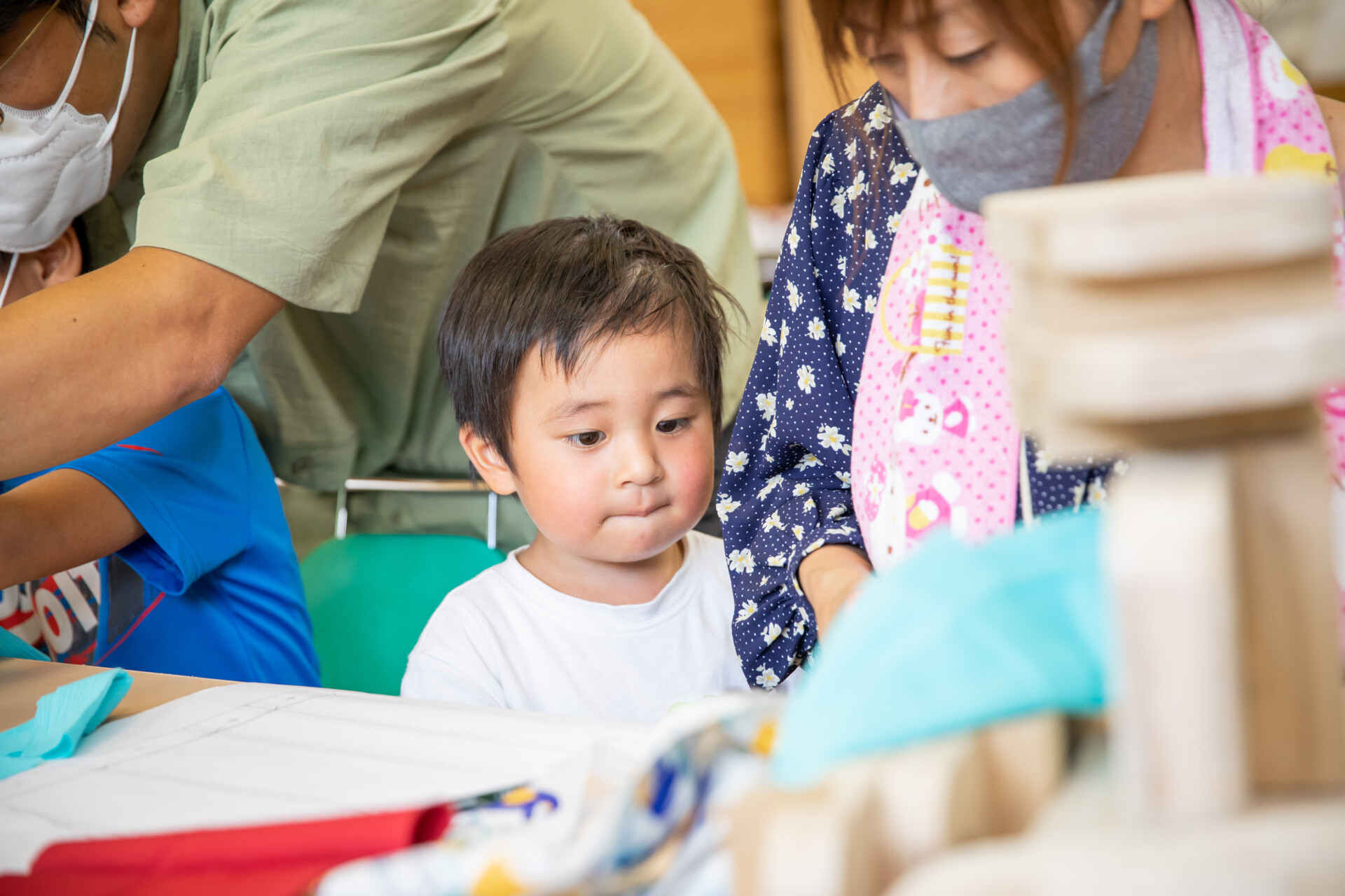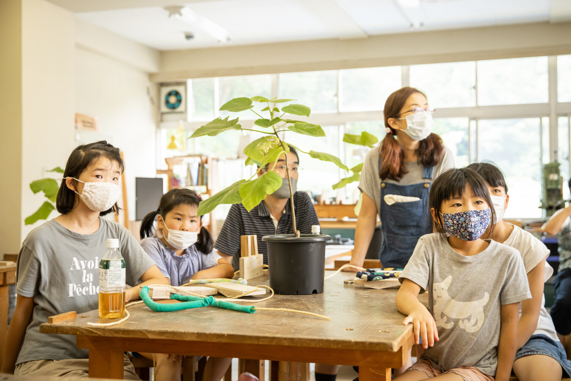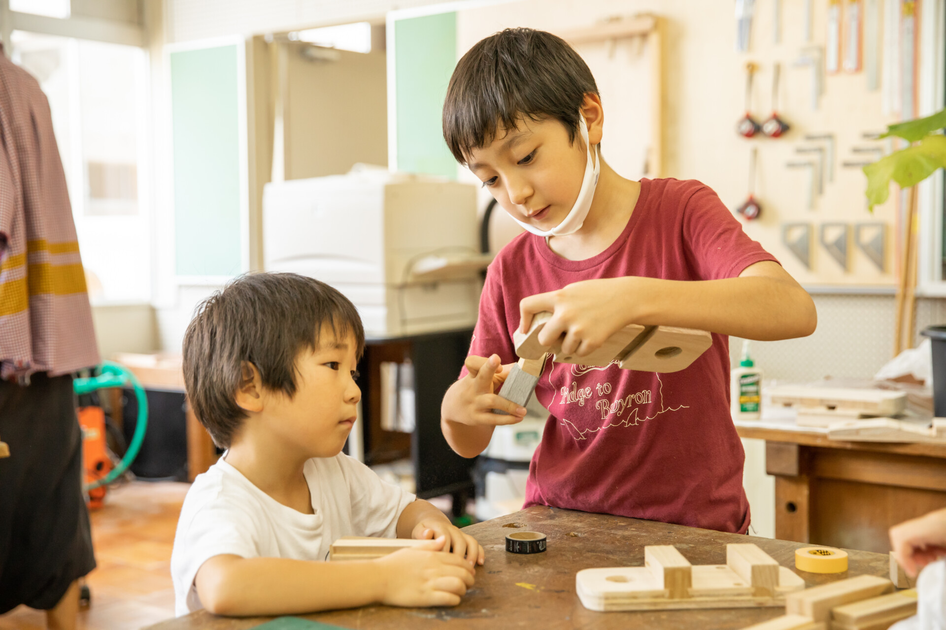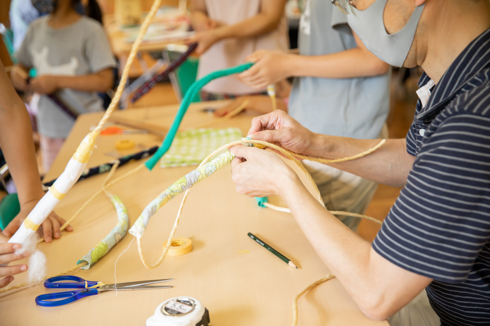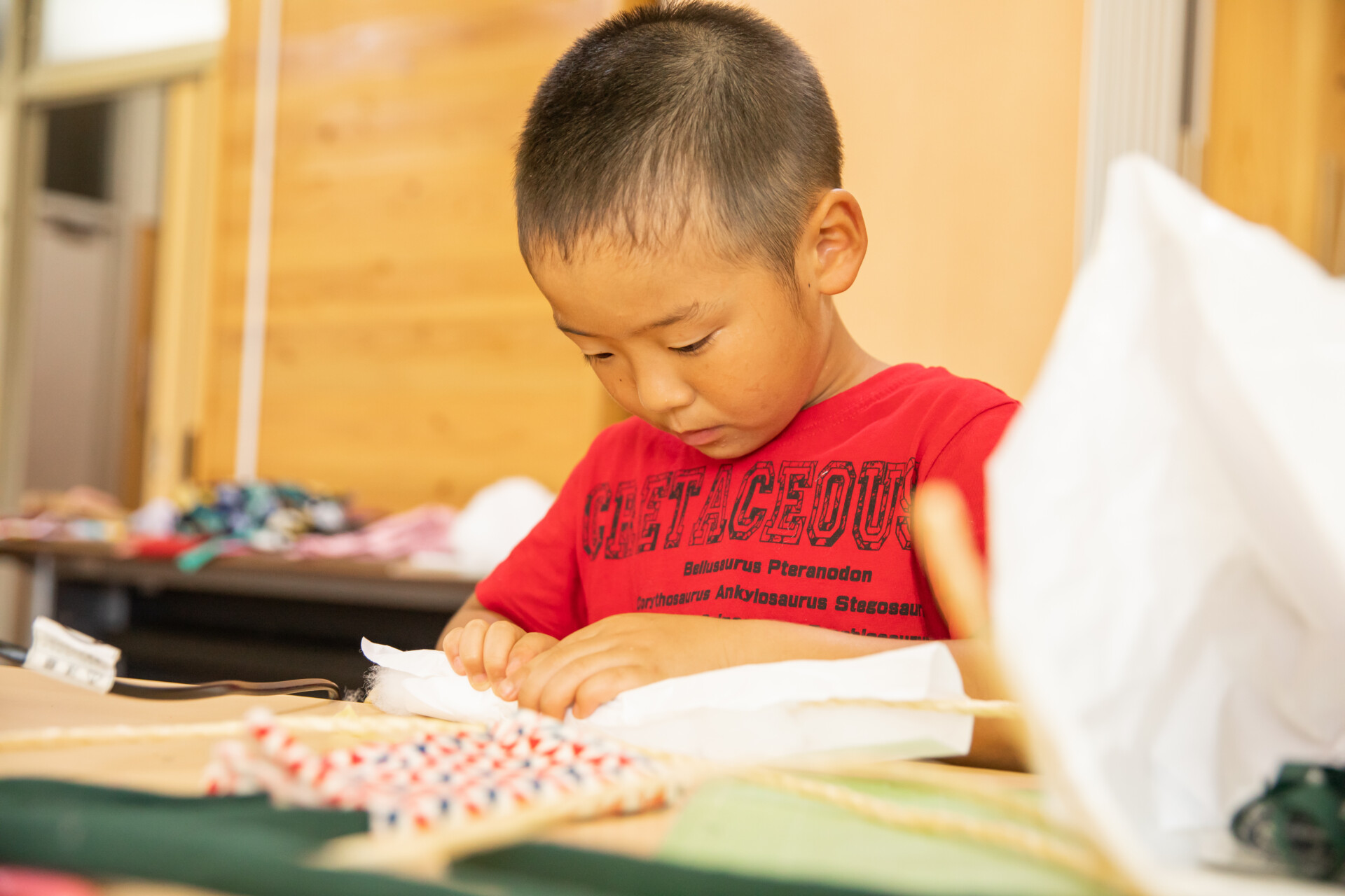 桐板から各自が加工して下駄を製作。それぞれが持ち寄ったハギレで鼻緒づくり。ミシンや道具を使いながら7時間かけて子どもも大人も自分の足に合ったオリジナルの桐下駄に。小さな子どもたちも自分の力で最後までやりきり、普段と違う歩く感覚を愉しみながら駆けまわっていた。今後は東京に自生する桐の木で東京ブランドの桐下駄ができたらと考えている。