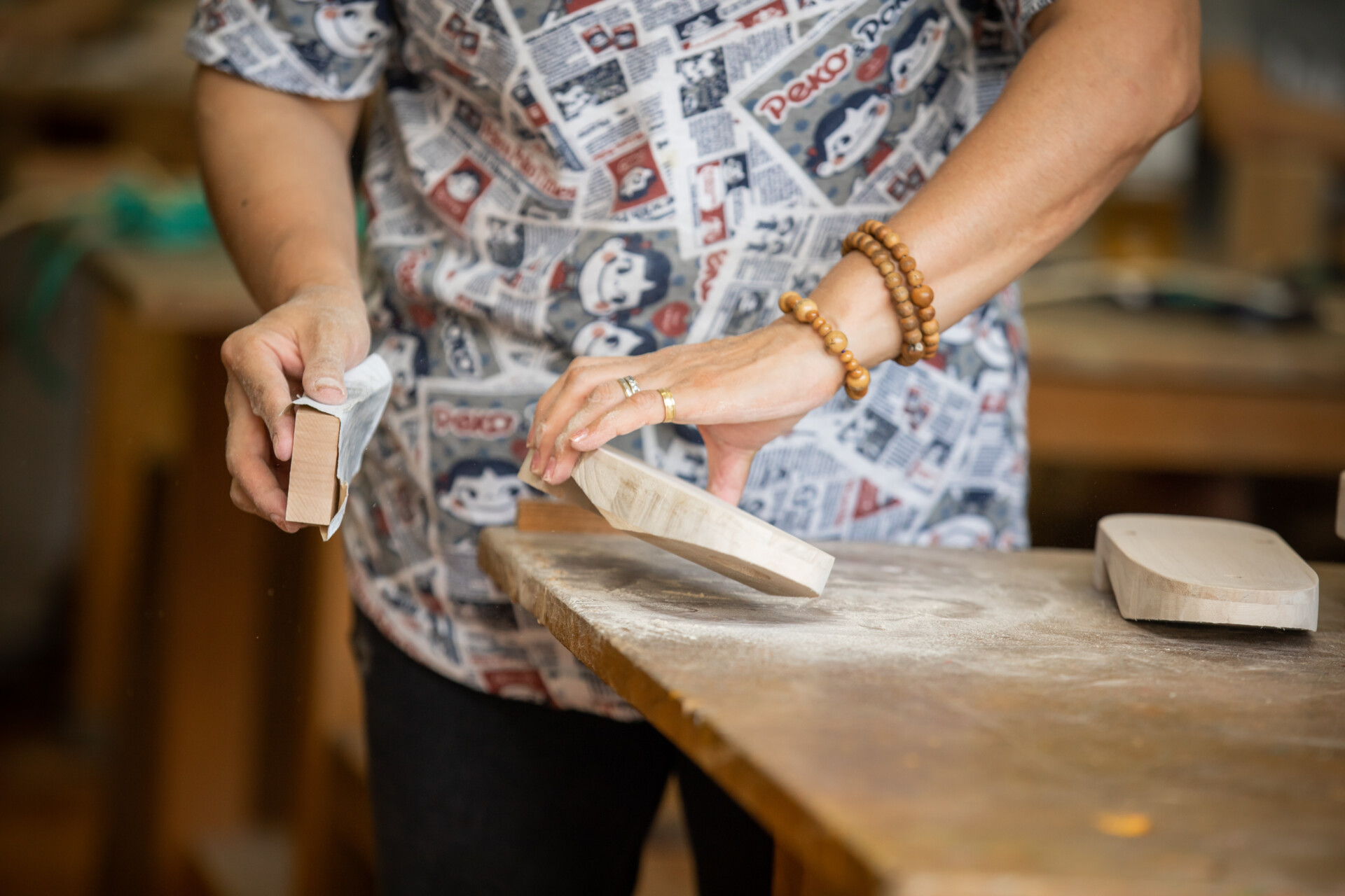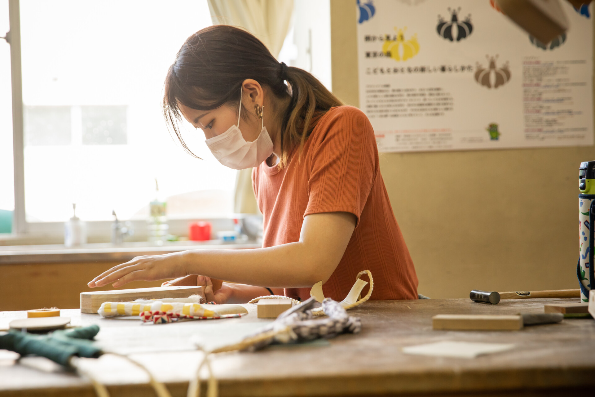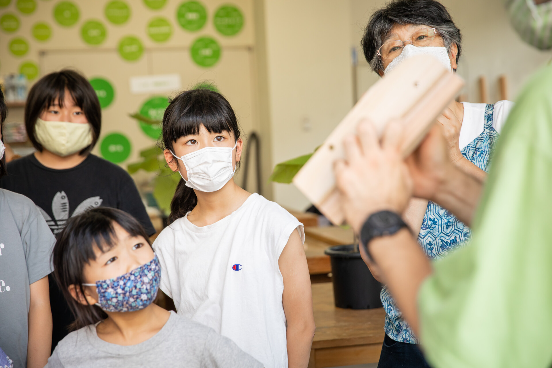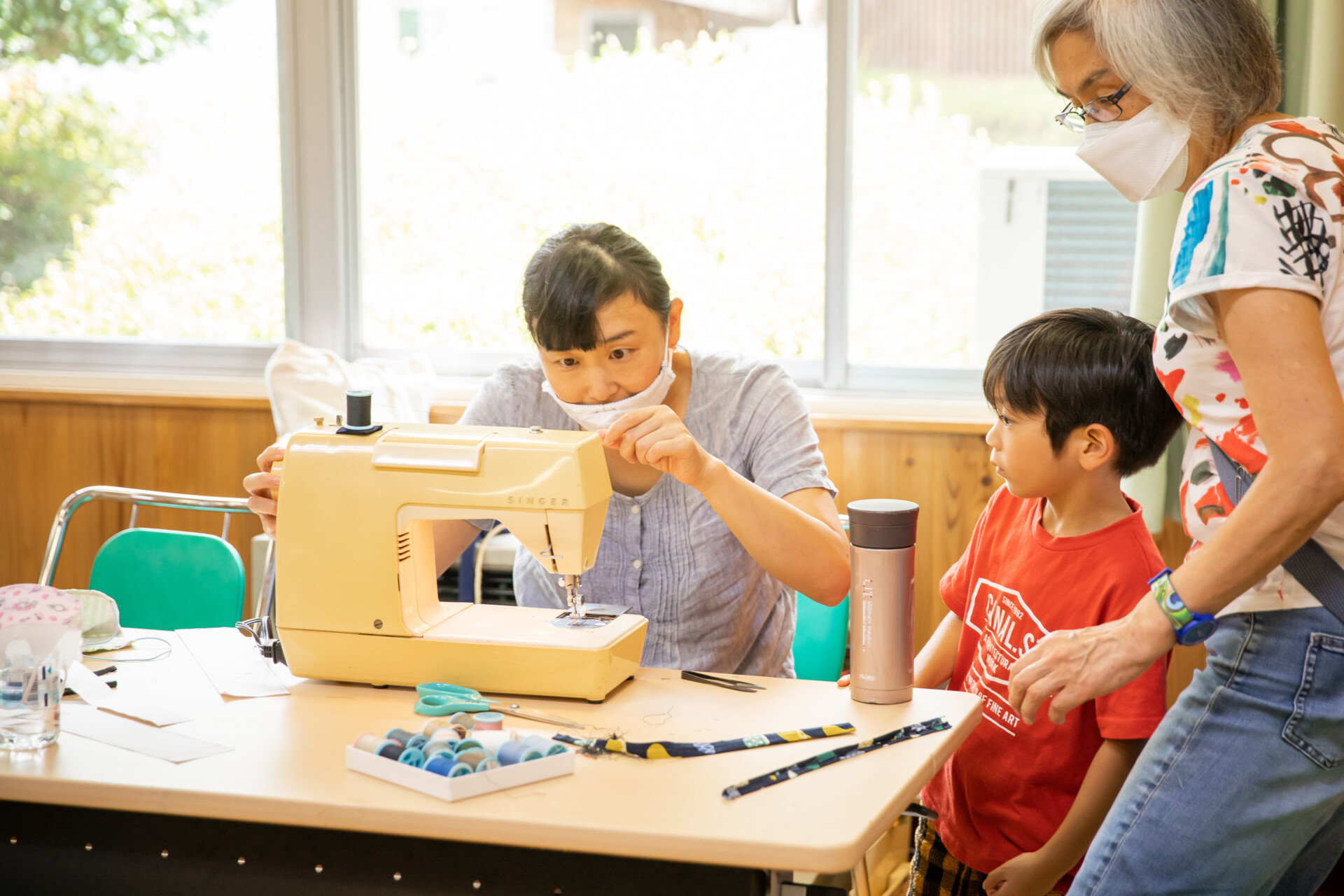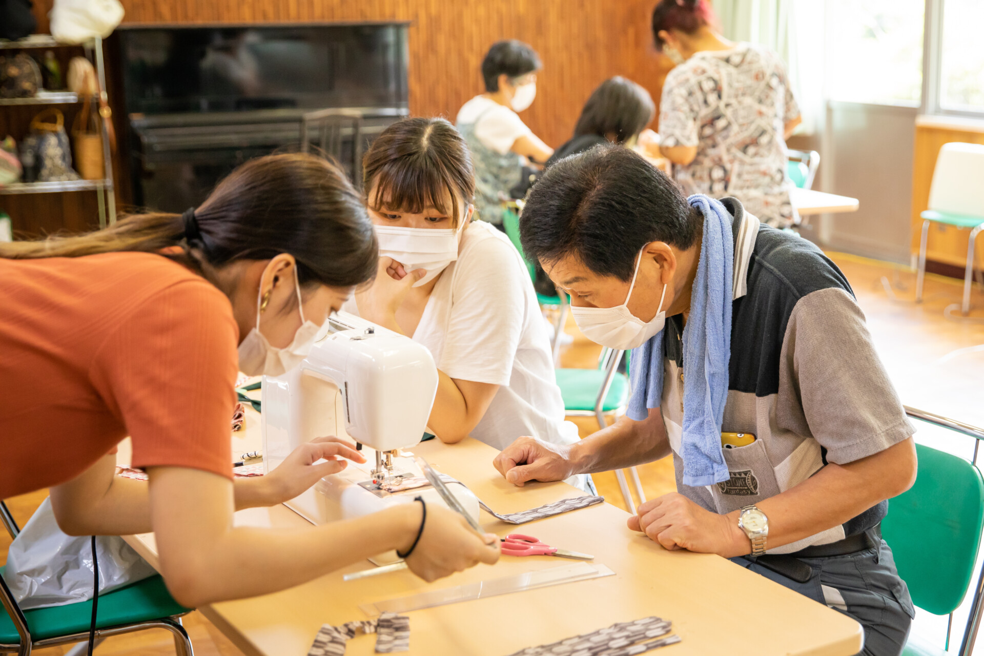 桐板から各自が加工して下駄を製作。それぞれが持ち寄ったハギレで鼻緒づくり。ミシンや道具を使いながら7時間かけて子どもも大人も自分の足に合ったオリジナルの桐下駄に。小さな子どもたちも自分の力で最後までやりきり、普段と違う歩く感覚を愉しみながら駆けまわっていた。今後は東京に自生する桐の木で東京ブランドの桐下駄ができたらと考えている。