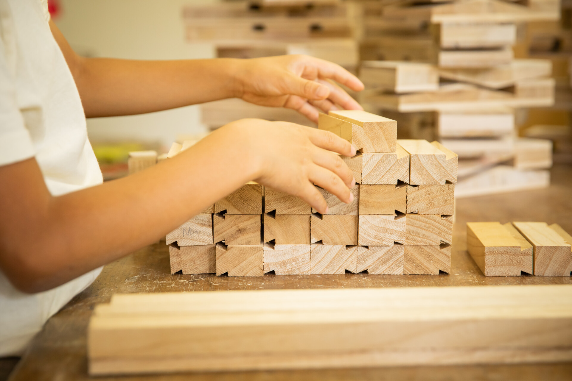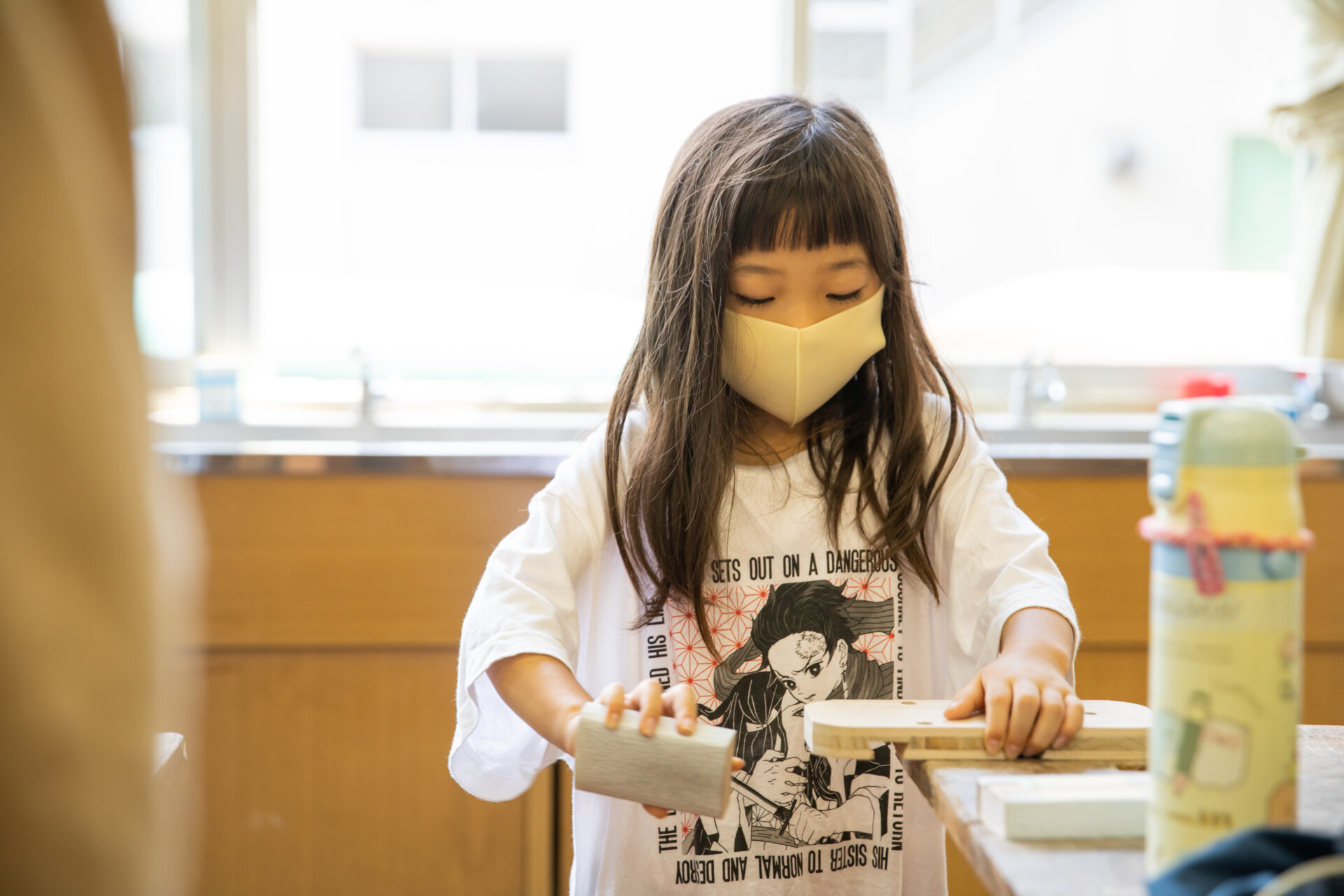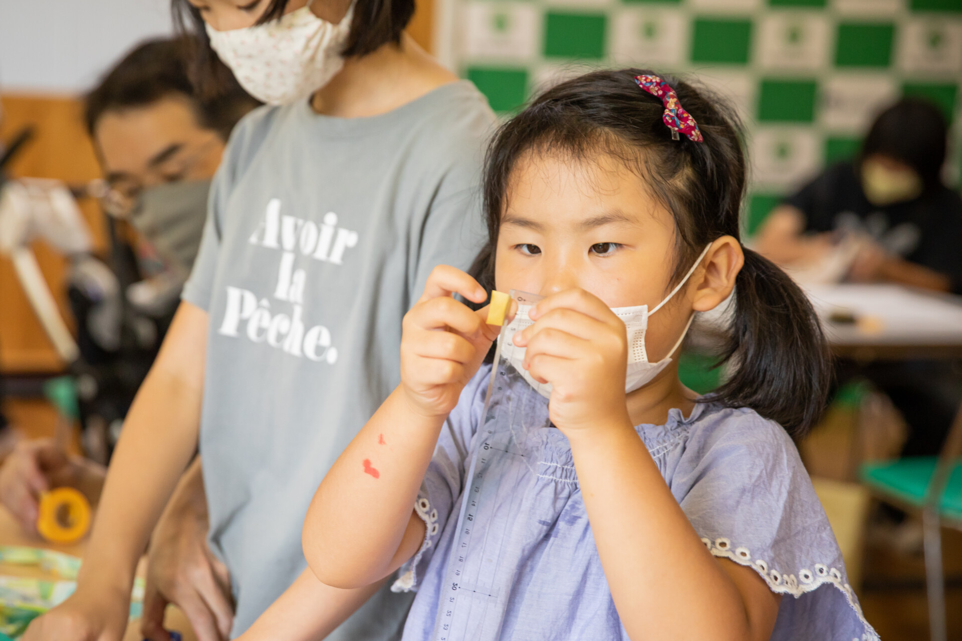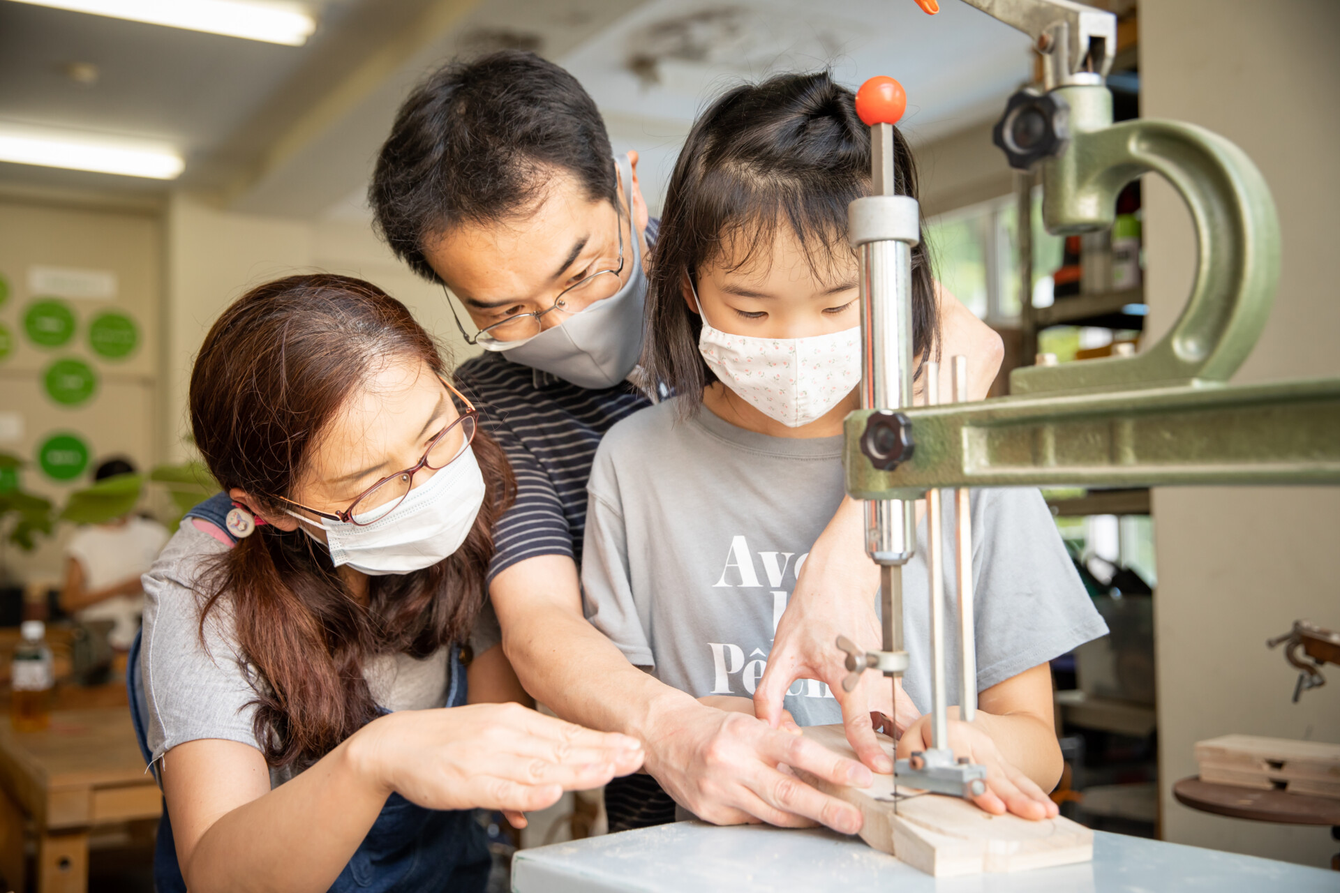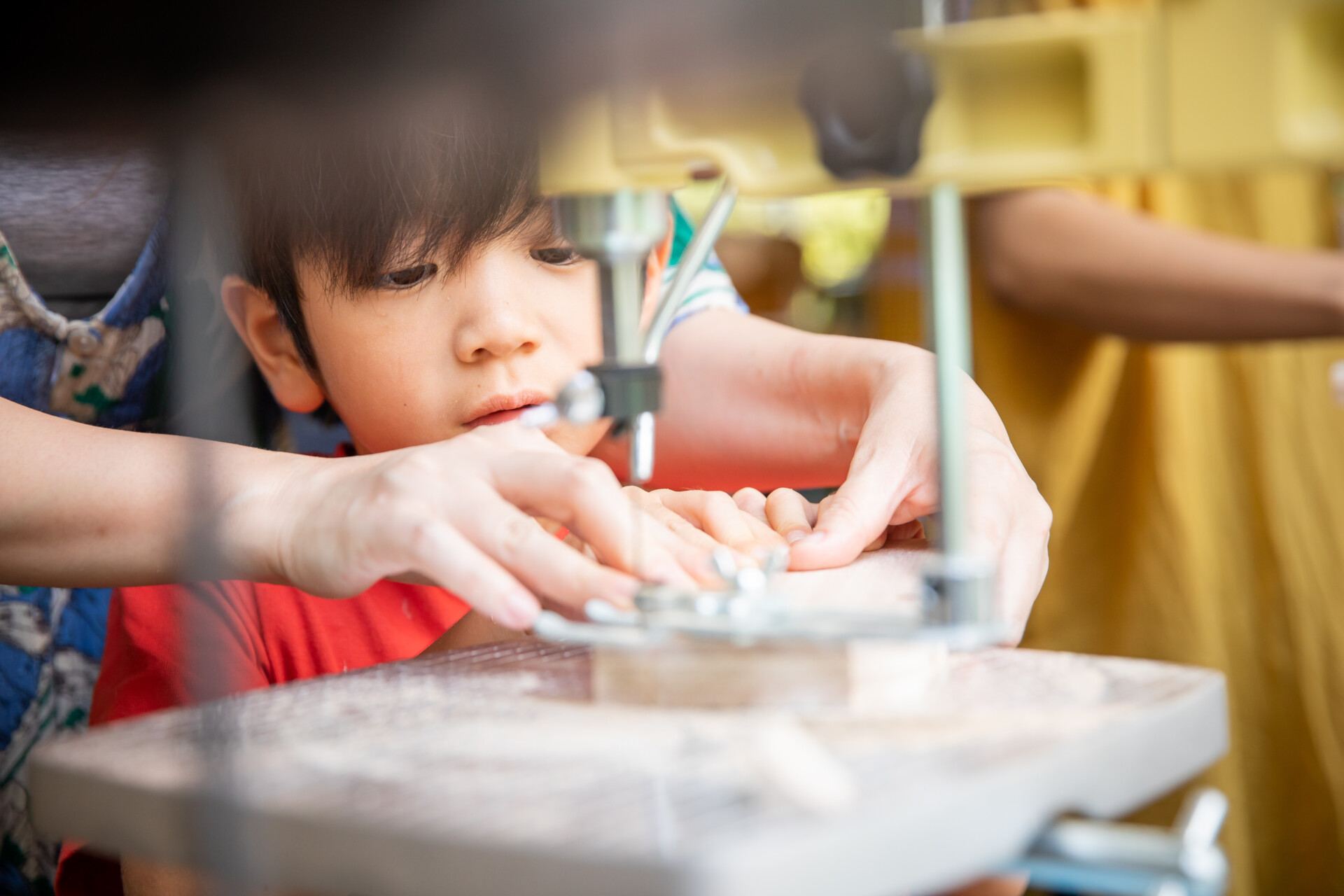 桐板から各自が加工して下駄を製作。それぞれが持ち寄ったハギレで鼻緒づくり。ミシンや道具を使いながら7時間かけて子どもも大人も自分の足に合ったオリジナルの桐下駄に。小さな子どもたちも自分の力で最後までやりきり、普段と違う歩く感覚を愉しみながら駆けまわっていた。今後は東京に自生する桐の木で東京ブランドの桐下駄ができたらと考えている。