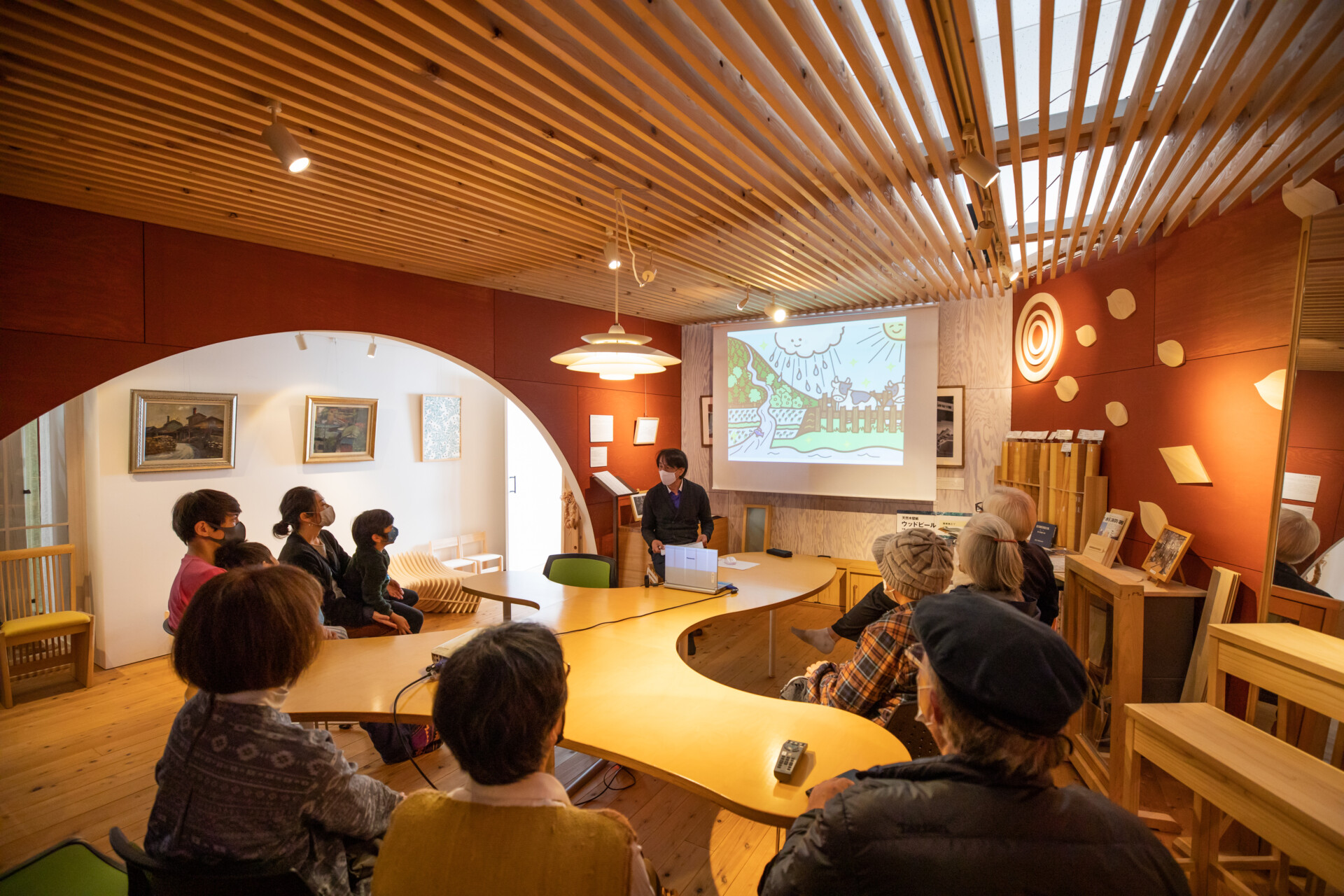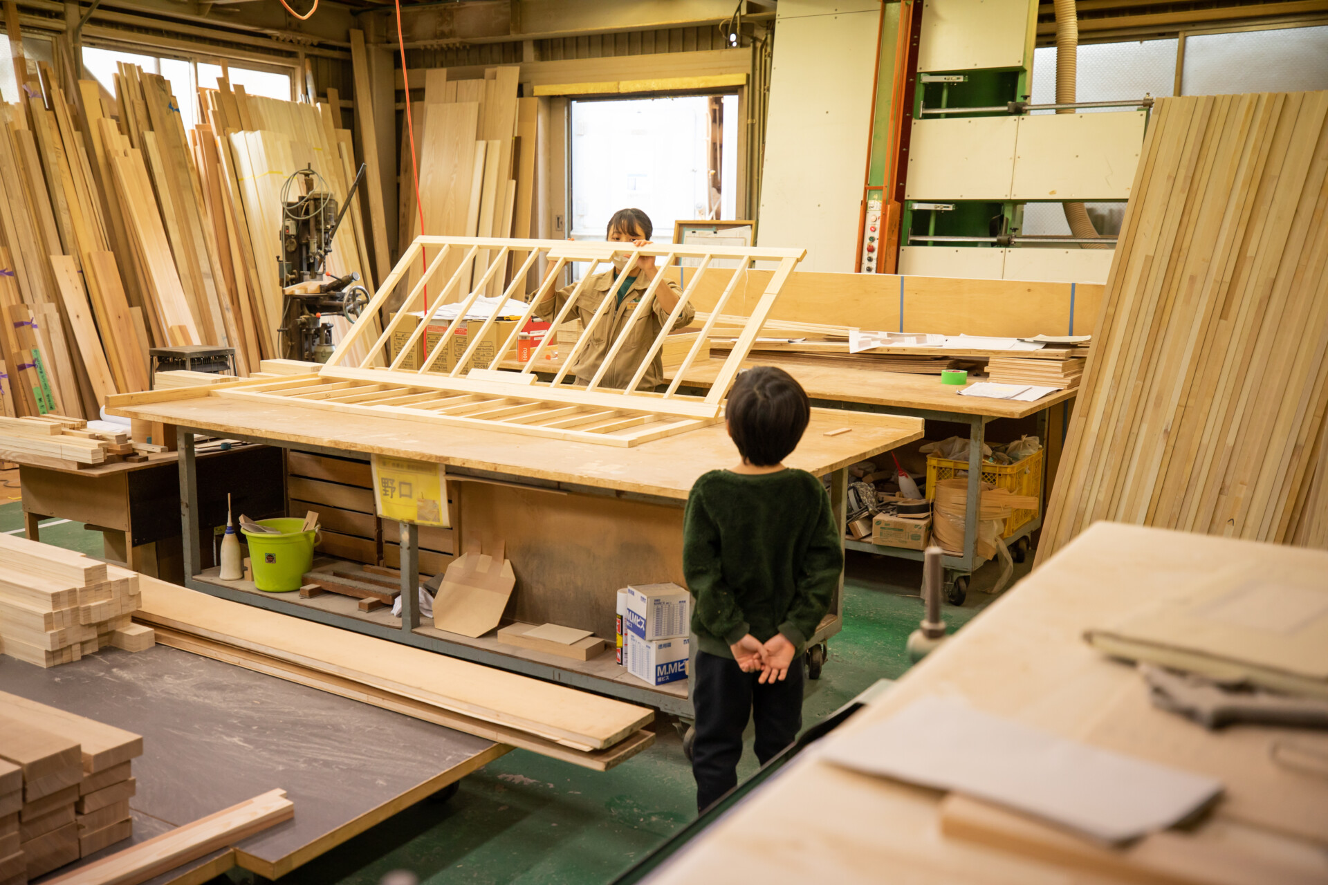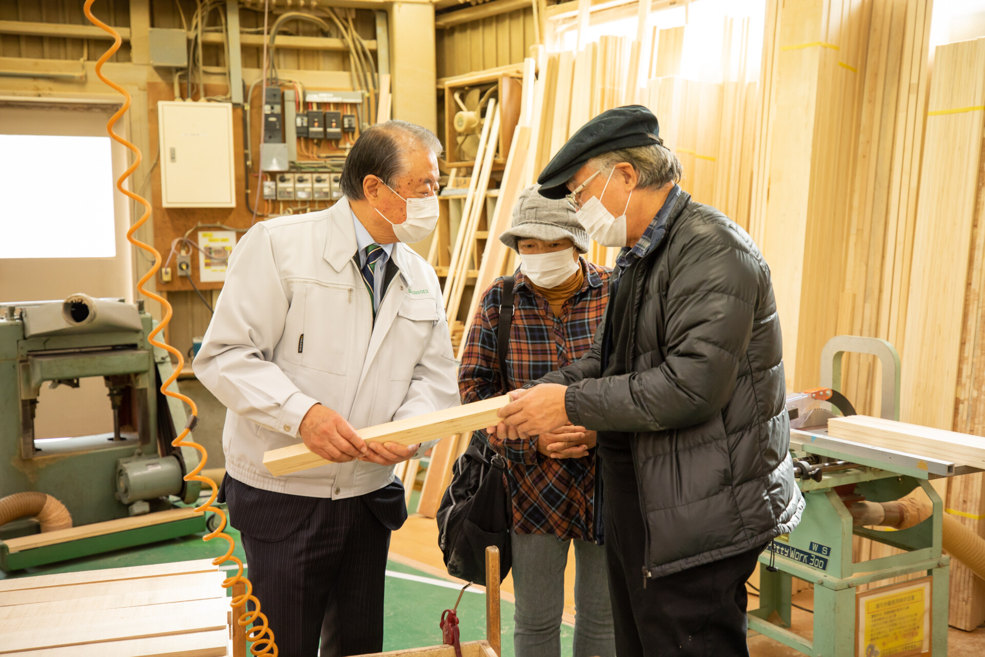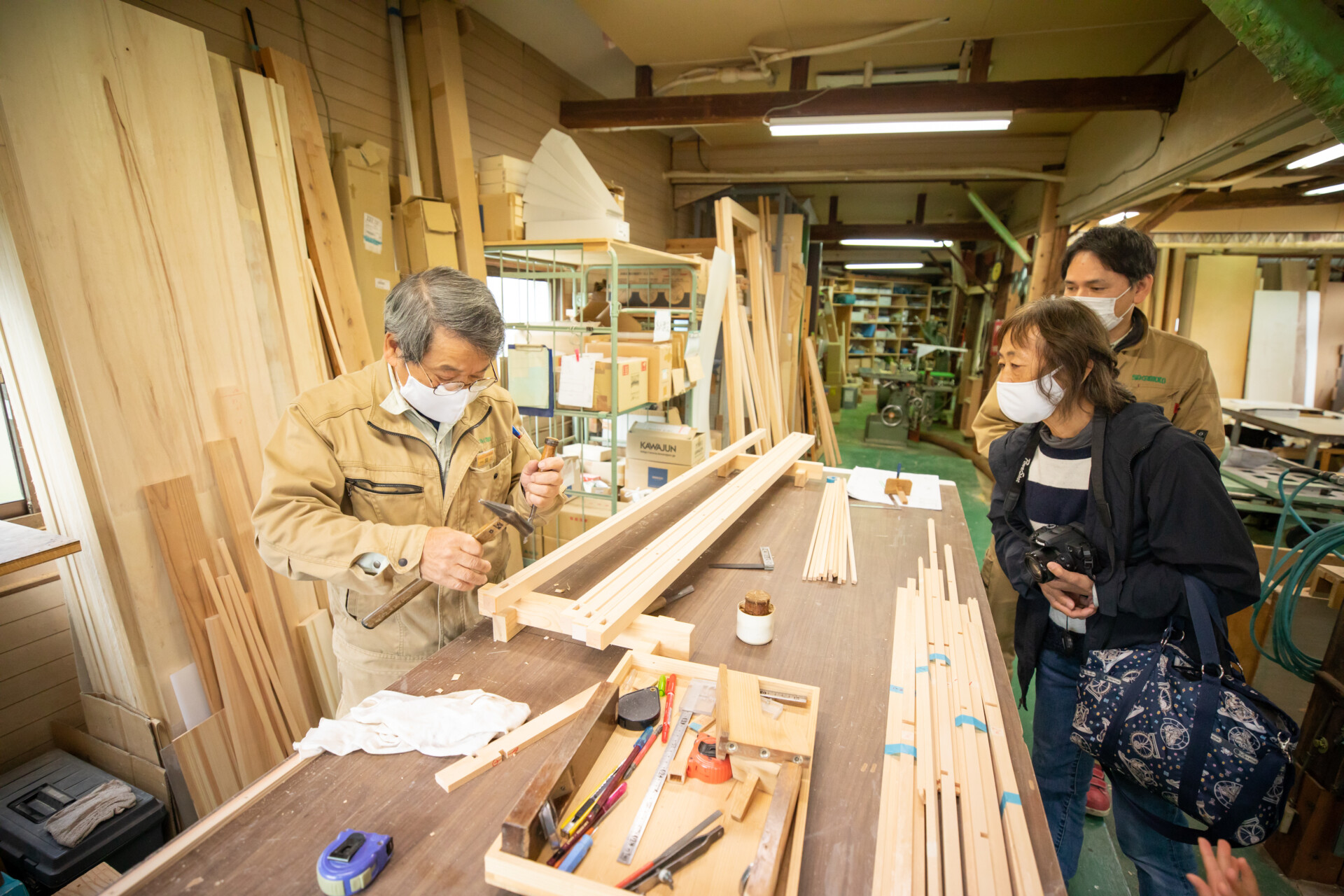 株式会社サカモト工場見学。実際に桐を使った集成パネルで家具や建具を製作している工場。調湿性や防火性、反りにくいなど多様な利点のある桐の性質を学ぶ。これからの可能性ある素材をものづくりの視点から迫る。トーベ・ヤンソンあけぼの子どもの森公園(飯能)にて昼食。コロナ禍でムーミン小屋が閉鎖されていたため、急遽同じ地域で西川材を中心に木材加工を扱うフォレスト西川の工場を見学させていただいた。